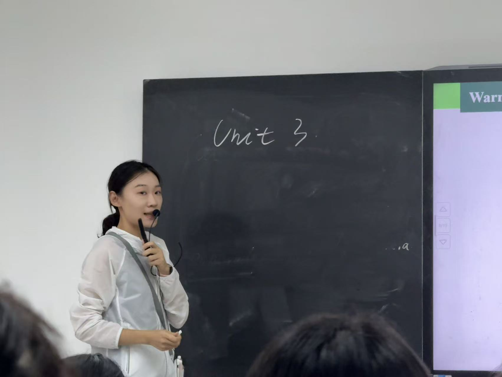 第二位展示的是教师李昕玥,其授课主题为“Cuisine”。李老师通过生动的内容设计和贴近生活的案例,引导学生深入理解饮食文化相关英语表达,展现出良好的课堂驾驭能力。