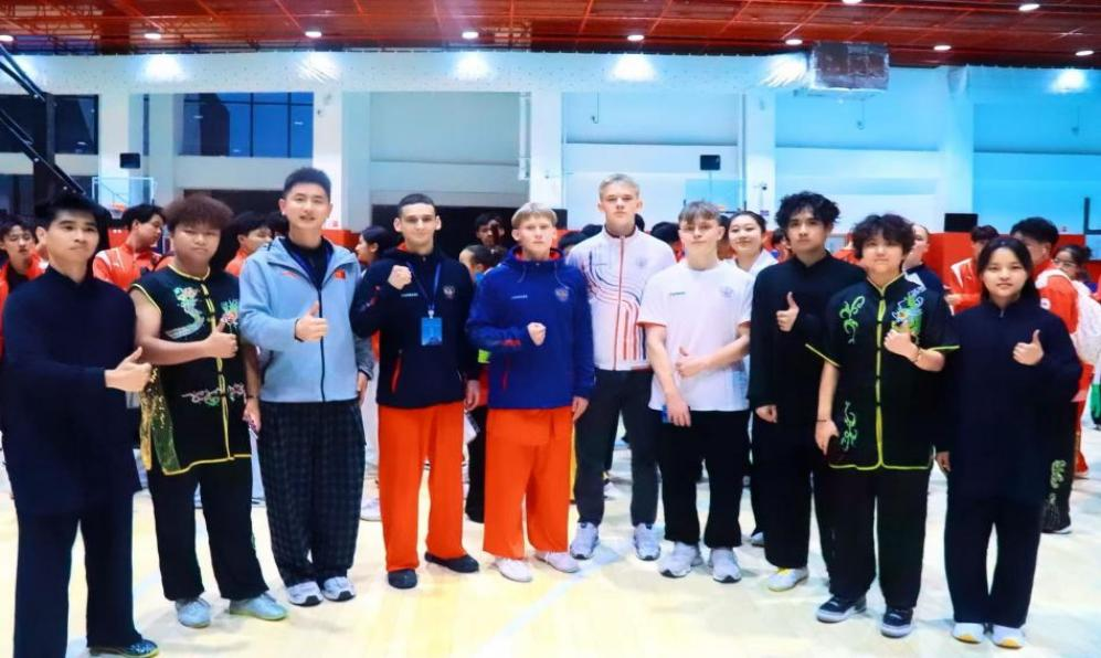【赛后西安工商学院武术代表队与俄罗斯代表队及其他高校代表队进行友好交流】